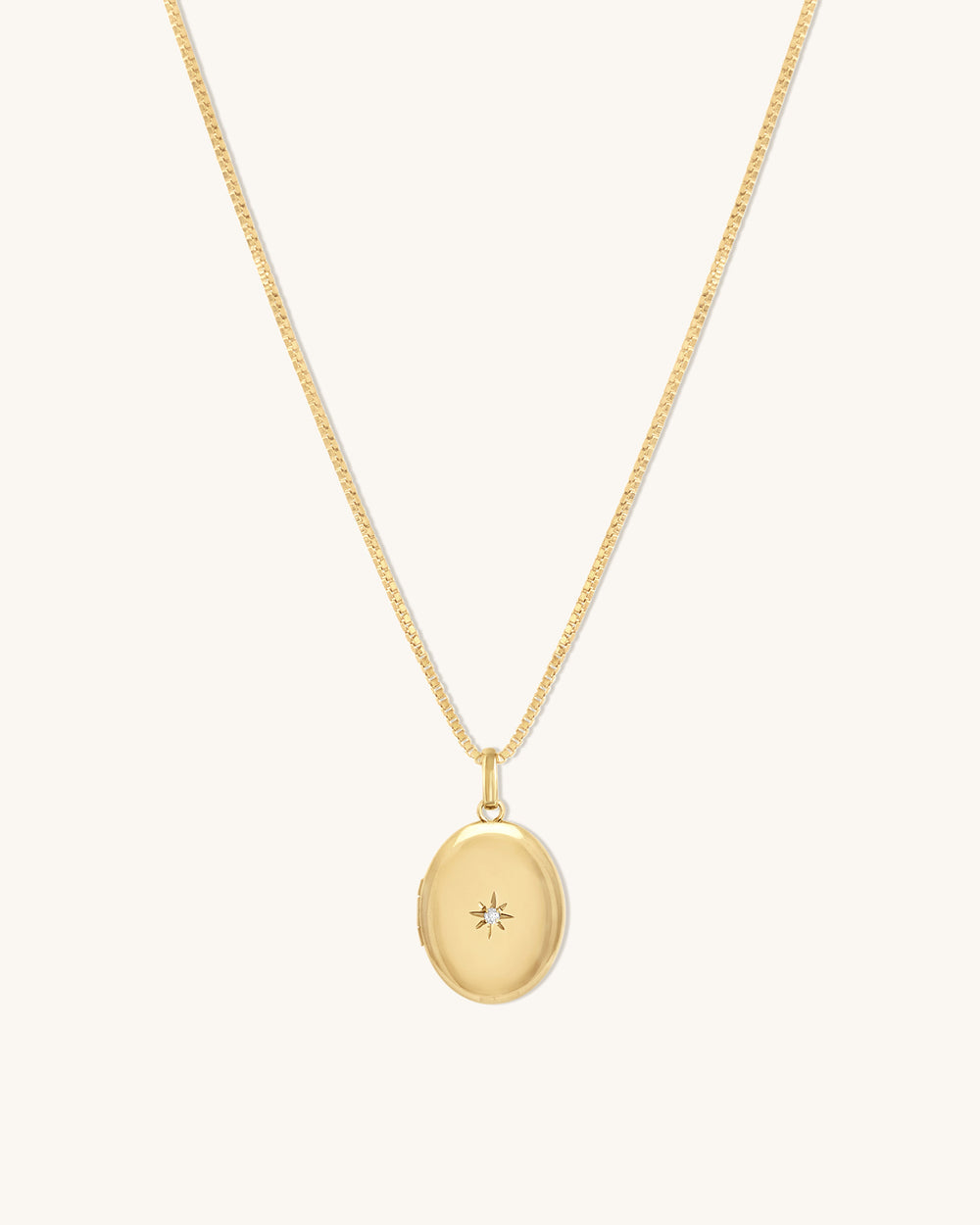 A future heirloom — this antique-inspired locket is made to be passed down through generations and keeps your loved ones close to your heart. Features a highly polished, gold-filled surface that houses a genuine diamond spark.